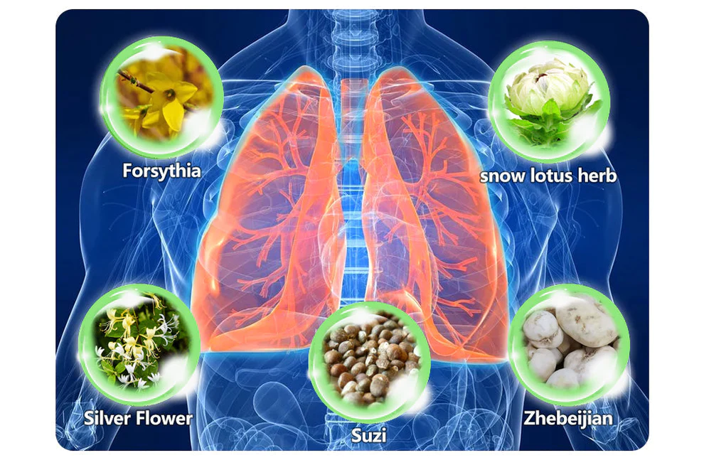 Snow lotus, silver flower, forsythia, fritillaria, perilla extract and other plant extracts can effectively relieve respiratory symptoms, sinusitis, asthma, chronic cough and cold, stimulate the secretion of body fluids in the lungs, and expel accumulated waste such as sputum. Help the regeneration of lung trachea and alveolar tissue, giving you healthy and smooth lungs.