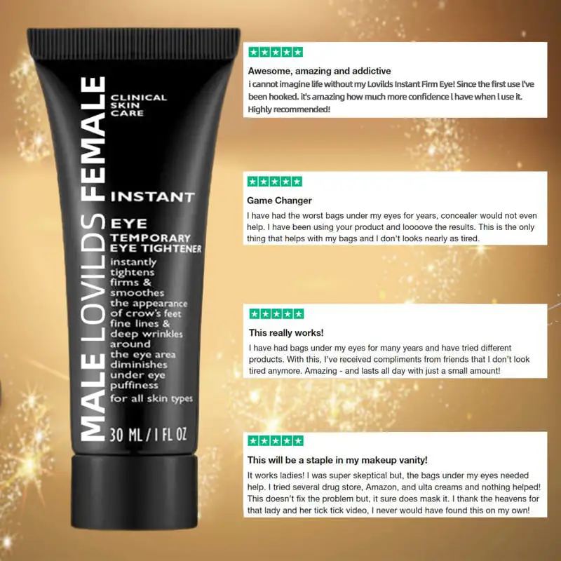 Thanks to our Instant Eye Temporary Eye Tightener, you can achieve an amazing youthful – all without expensive treatments or procedures.