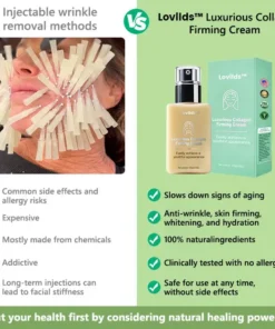 The LOVILDS™ Luxurious Collagen Firming Cream is an effective solution to minimize visible signs of aging and wrinkles. rejuvenating the skin in 3-5 weeks. Enriched with Shea Butter. which has excellent nourishing properties. it supports skin regeneration and effectively fades scars.