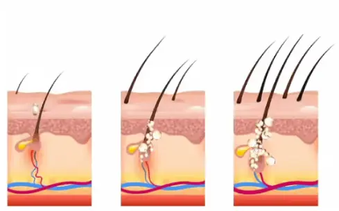 Damage to hair follicles is most commonly caused by mold or fungal infections. These infections activate the body’s natural defense mechanisms and provide safety precautions for the hair follicles left behind, resulting in itchy scalp and hair loss. The hair follicles enlarge with pus and dead biological matter, causing swelling and tangles.
