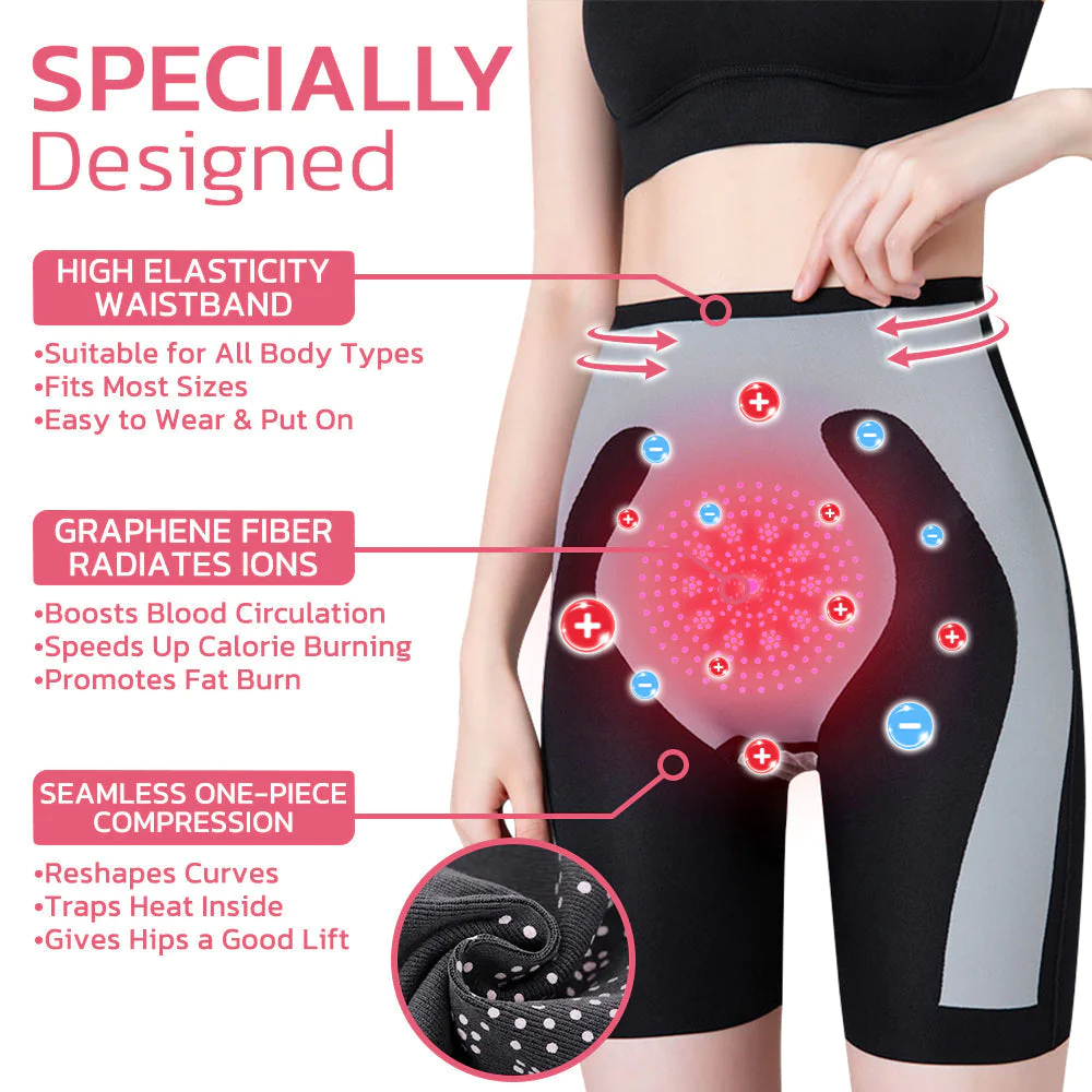 Harnessing the combined power of IONs emitted by the Graphene Fiber and the Seamless One-Piece Compression design, our shaper facilitates weight loss, fat burning, and hip shaping. The concentrated ION concentration around the waist specifically targets belly fat, while the compression fit of our shaper aids in shaping and sculpting your body.