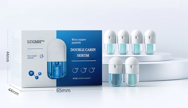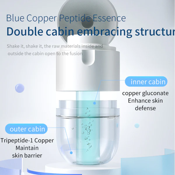 To ensure that the active ingredients in Collagen Blue Copper Peptide Serum are optimally delivered to the skin, the product is packaged in a unique double-cabin capsule appearance.
