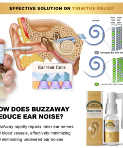 Rejuvenation of Damaged Hair Cells in the Inner Ear: BuzzAway includes natural ingredients that encourage the release of growth factors, stimulating the regeneration of damaged hair cells in the inner ear.