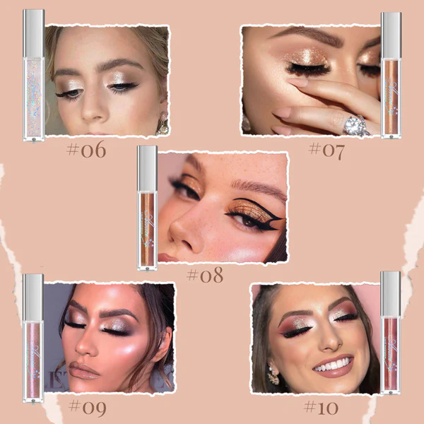 The glitter particles on the eyes will increase saturation and make the eyes more three-dimensional. Liquid eye shadow with sparkling glitter, suitable for different occasions.