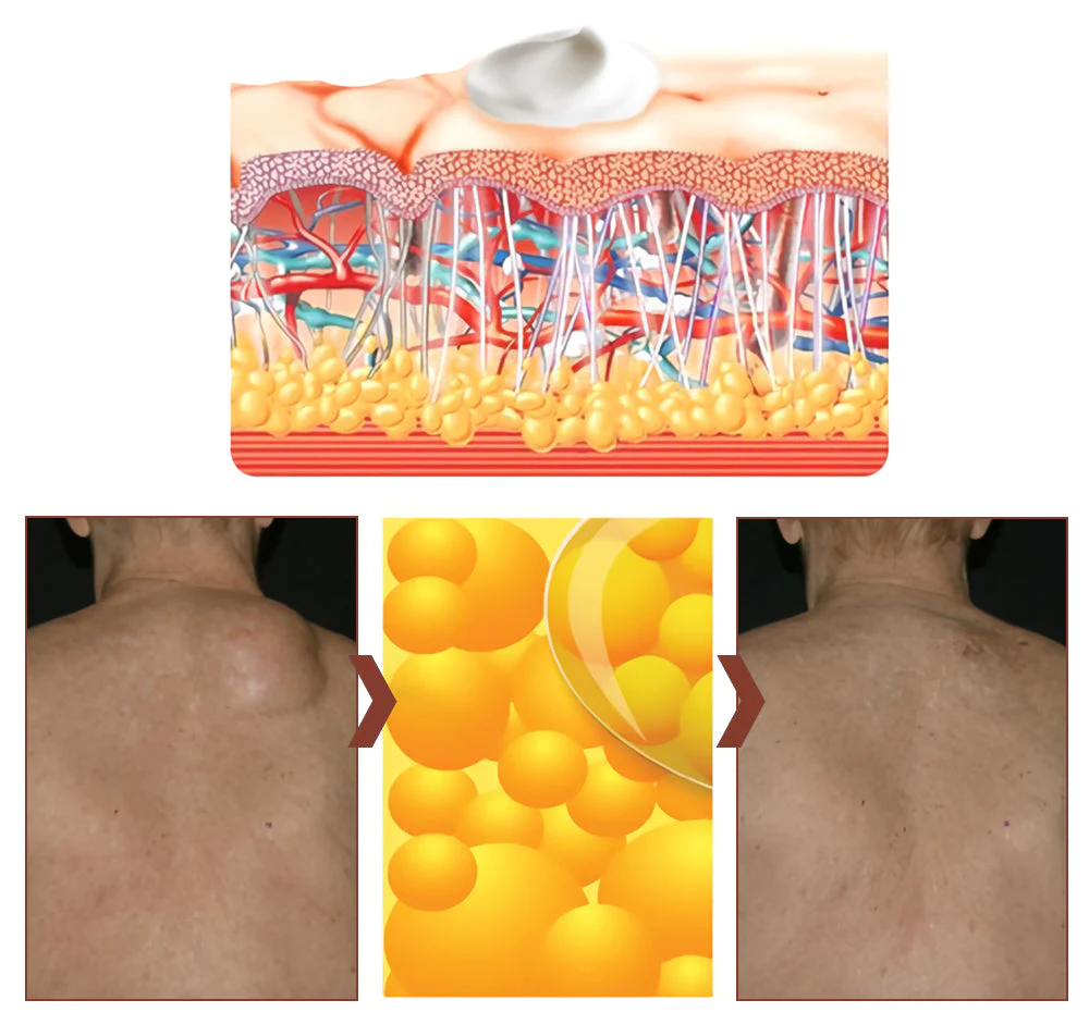 ✅Painless therapy, specifically created for benign lipomas, and anti-inflammatory from the skin’s inside.