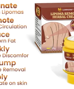 LumpGone™ Lipoma Removal Herbal Cream treat benign and non-cancerous lumps in the body. Help in reducing the size of fatty tumors and lipoma lumps, especially around the neck. This cream relieves pain and neurological discomforts caused by different forms of lipoma. And also helps prevent the formation of lipomas in fat or obese people.