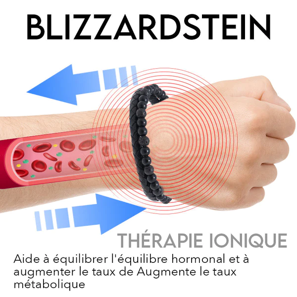 Les bracelets sont composés de pierres d’hématite et de blizzard et ont la propriété de libérer des ions négatifs et positifs qui peuvent réguler le flux de notre système sanguin et lymphatique.
