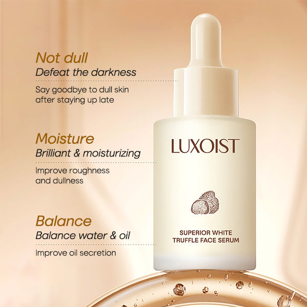 Luxoist Superior White Truffle Face Serum is crafted with Premium White Truffles from Italy, known for their potent antioxidants. These include vitamins C and E, which effectively combat free radicals and defend against oxidative stress and aging. The serum also supports cell renewal, diminishes inflammation, and promotes a youthful, radiant complexion.
