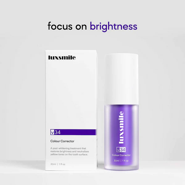 V34 is intended for people who are looking to further brighten their teeth post-whitening, or already have a very white tooth shade and don’t require a full treatment from the Teeth Whitening Kit. Oxidising tooth stains with PAP+ increases the lightness and reduces the saturation of yellow stains, whereas V34 balances the warm and cool tones (hue) in your teeth to reveal a more vibrant shade of white.