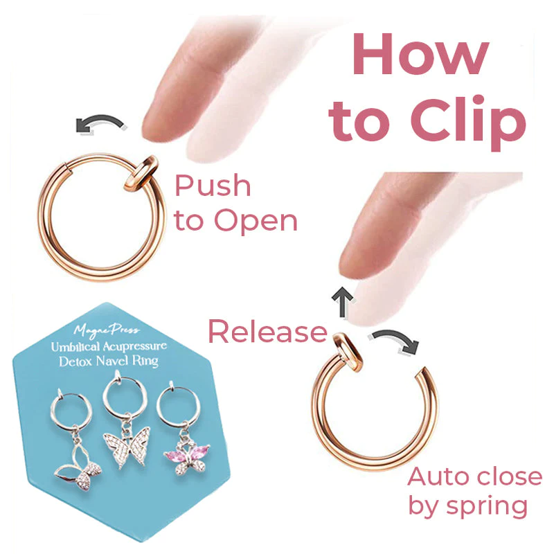 Pressure applied to the navel might activate acupuncture points. By clipping Navel ring it automatically applied pressure to activate the acupoints that can help your stimulate digestive system and improve your blood flow. pressure points are thought to be powerfully sensitive parts of the body. By applying pressure to our body’s pressure points, it can help relieve pain, establish balance, and improve health throughout the body.