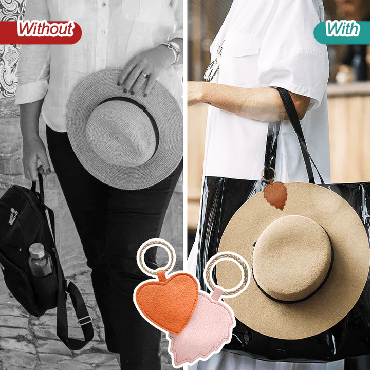 Ultimately Stylish This versatile hat holder is professionally-constructed with high-quality PU leather materials and fine stitchings. It offers a stylish leah-shape design with a beautifully golden buckle that adds a touch of elegance. This can blend fashionable on different bag styles and even to your OOTDs. What’s more? Its clever leaf style allows it to be left alone on your bags while looking like a cute keychain.