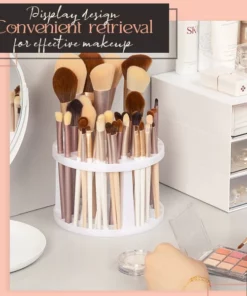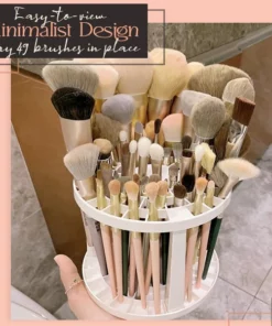 Large Capacity Storing A professionally curated beauty organizer that boasts an exceptional 49 slotted holes to hold different handfuls of brushes at one place. Providing your makeup essentials their own storage compartments to keep them more organized and easily accessible. What’s more? This circular brush storage enables you to see everything in your makeup collection at once so you can always quickly grab your needs. No more cluttered brushes everywhere your vanity and the need to blindly dive into the deep ends of your makeup kit pouches.