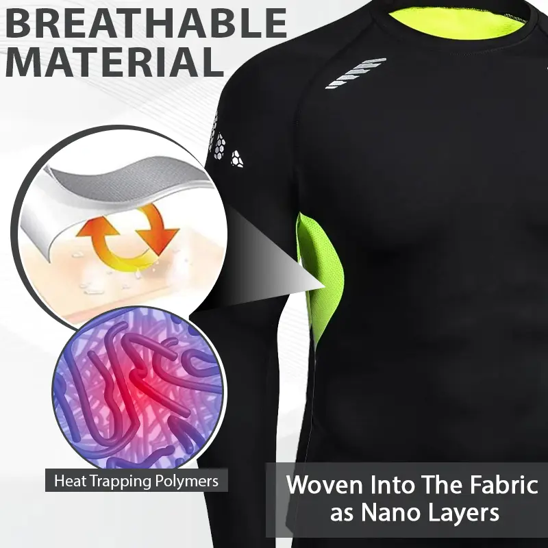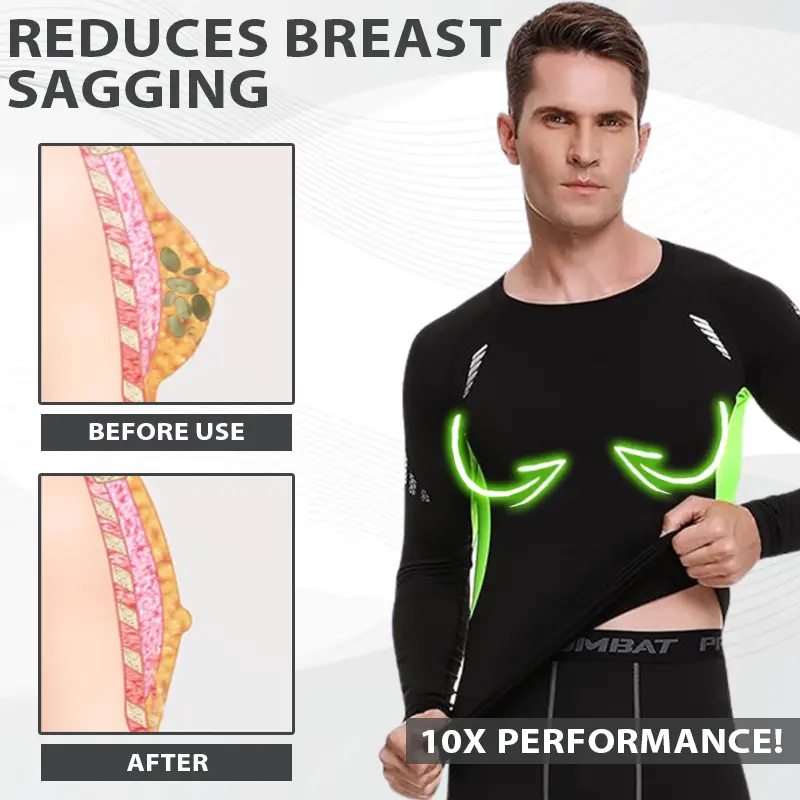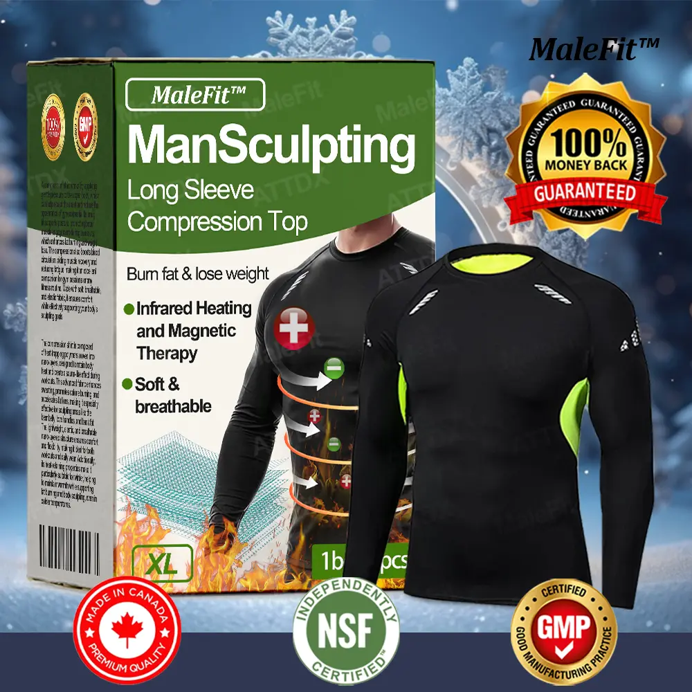 MaleFit™ ManSculpting Long Sleeve Compression Top is crafted with heat-trapping polymers woven into nano-layers, designed to retain body heat and create a sauna-like effect during workouts.