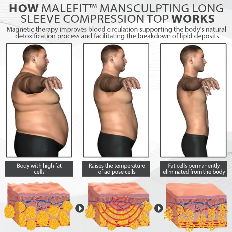 MaleFit™ ManSculpting Long Sleeve Compression Top applies gentle pressure to the upper body, sculpting the chest and reducing the appearance of gynecomastia. Its snug fit supports posture and enhances muscle engagement, boosting fat burning and weight loss, especially around the beer belly, love handles, and back. The compression also improves blood circulation, aiding muscle recovery and reducing fatigue. Made with soft, breathable, and elastic fabric, it ensures comfort while supporting your body’s sculpting goals during workouts or daily activities.