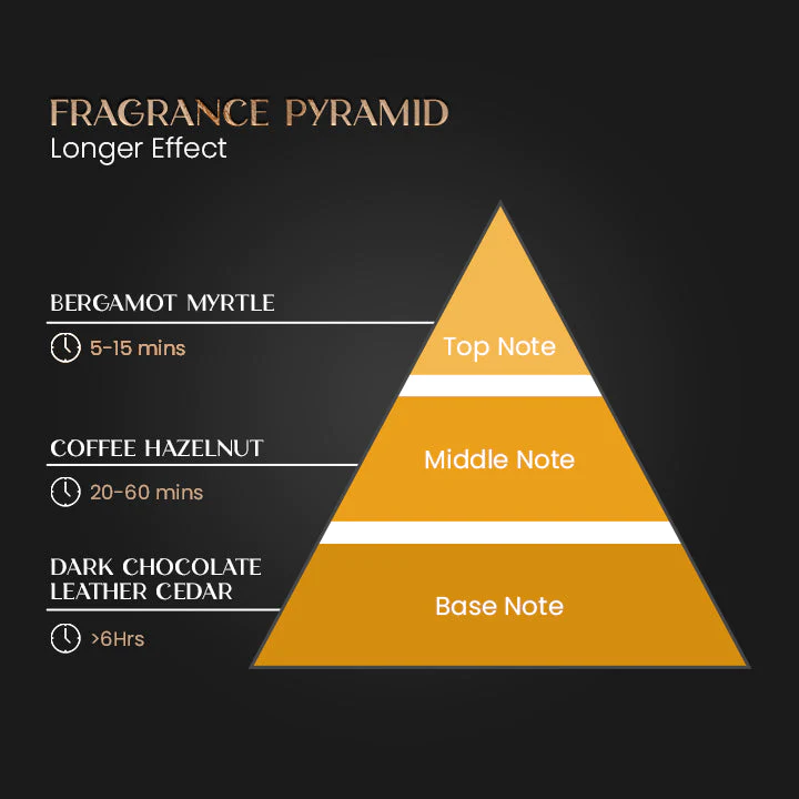 Fragrance Descriptors: Masculine, Bergamot Myrtle, Coffee Hazelnut, Dark Chocolate, Leather Cedar