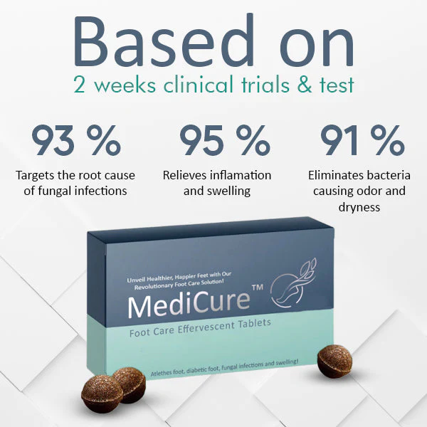 “MediCure™ Foot Care Effervescent Tablets are carefully formulated from a potent blend of natural herbs and botanical extracts that have been carefully selected for their powerful anti-inflammatory and antimicrobial properties. These tablets are not only meant to support the body’s natural detoxification process to relieve inflammation and fight harmful bacteria over a period of 3 to 6 weeks you will see the remarkable transformation of your feet into a state of radiant health. As an experienced podiatrist, I fully endorse this product. Trust the healing potential of these tablets to restore vitality and comfort to your feet.”