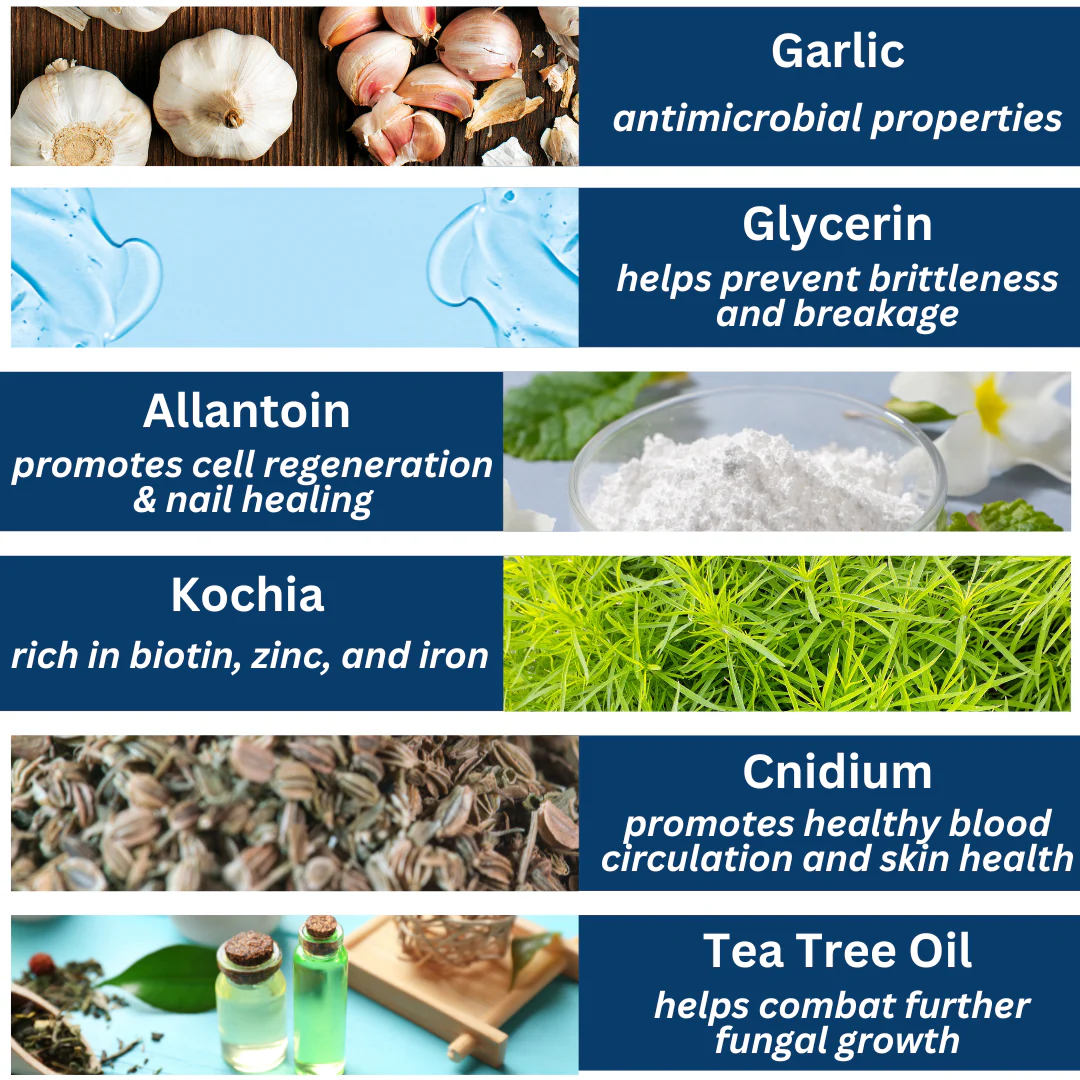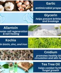 Knoblauch: Knoblauch verfügt über ein reiches Reservoir an bioaktiven Verbindungen, die für ihre starken antimikrobiellen Eigenschaften bekannt sind. Diese Verbindungen arbeiten harmonisch zusammen, um die Gesundheit und Integrität Ihrer Nägel zu schützen, und bieten einen undurchlässigen Schutzschild gegen potenzielle mikrobielle Bedrohungen. Durch die effektive Eindämmung der Vermehrung von Bakterien und Pilzen bietet Knoblauch einen robusten Abwehrmechanismus, der für ein optimales Wohlbefinden und eine lange Lebensdauer Ihrer Nägel sorgt.