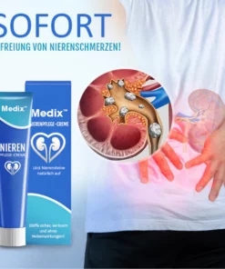 Erschließen Sie die Kraft der natürlichen Pflege mit Medix™ Nierenpflege-Creme – einer revolutionären Lösung zur Förderung der Nierengesundheit und des allgemeinen Wohlbefindens. Unsere fortschrittliche Formel kombiniert die Weisheit alter pflanzlicher Heilmittel mit modernster wissenschaftlicher Forschung und bietet einen ganzheitlichen Ansatz zur Nierenpflege, den Ihr Körper verdient!