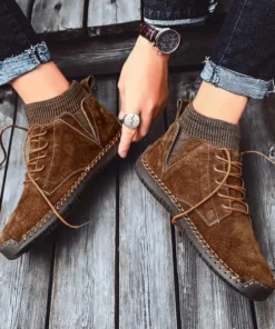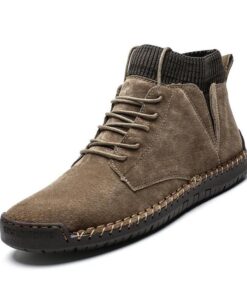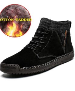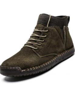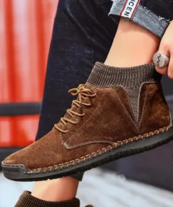 Men Suede Fabric Hand Stitching Warm Plush Lining Ankle Boots