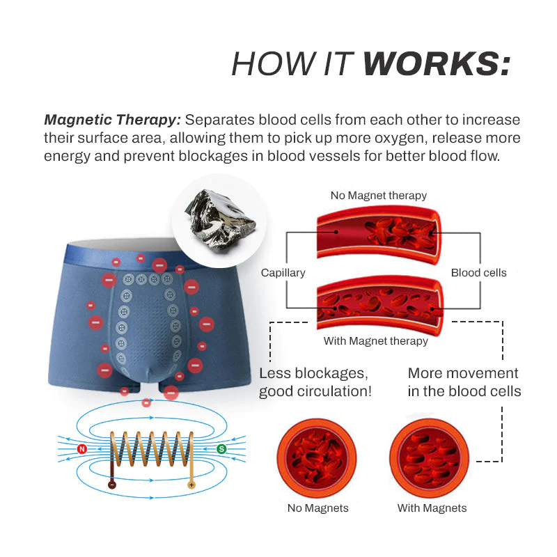 MenIONIC EnergyField Therapy MagPants help to effectively stimulate blood circulation and eliminate inflammatory cells and toxins. It also reduces fluid buildup, weight loss, and energy depletion.