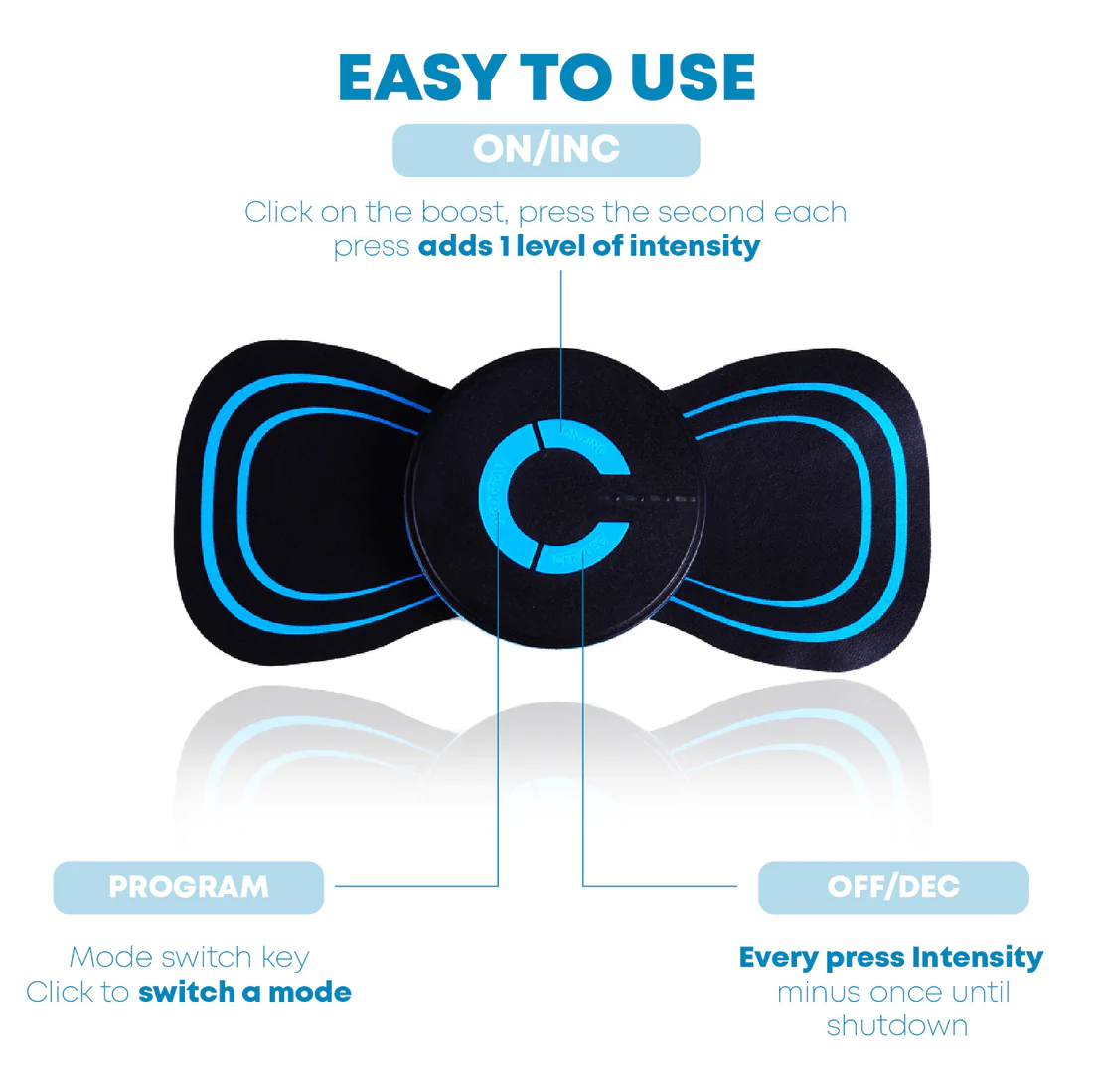- Adjust to the massage intensity that suits you. Continue to press “ON/INC” to increase the intensity and “OFF/DEL” to decrease the intensity.
