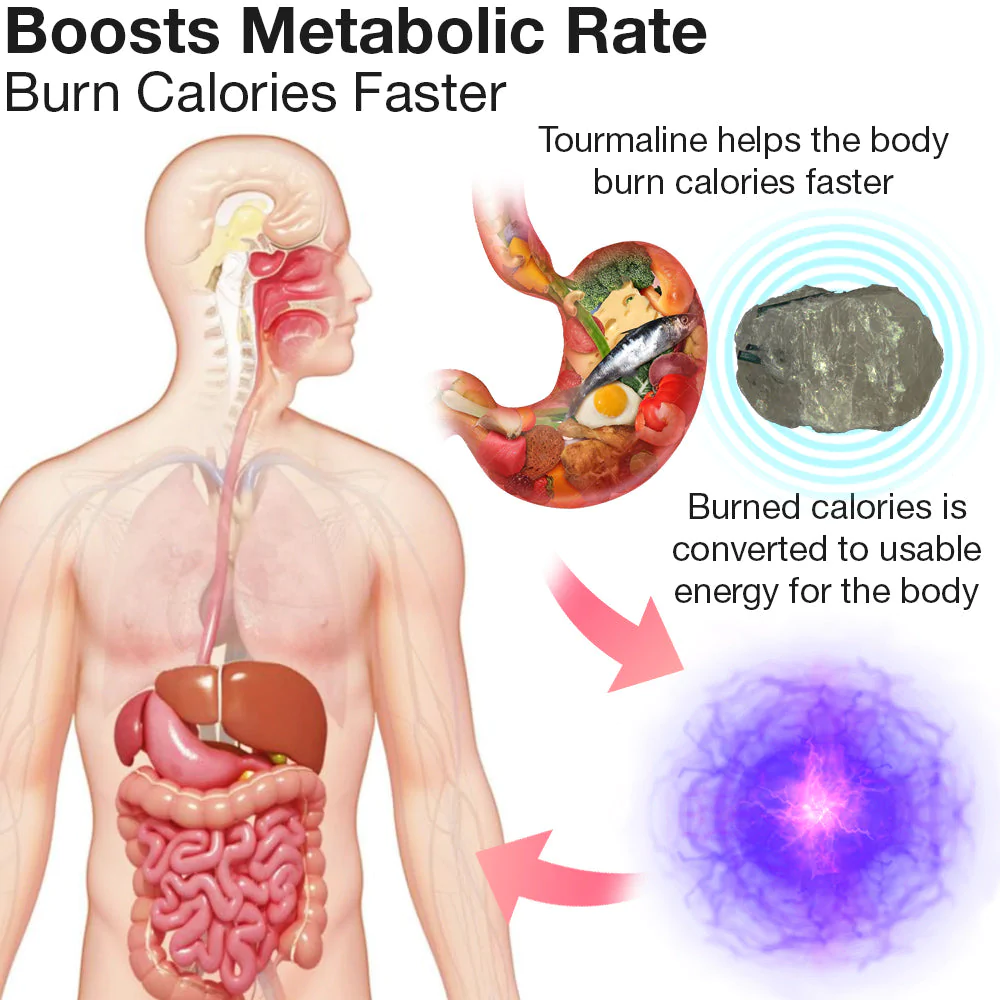 Tourmaline assists with the functions of the intestines and colon. When you digest food efficiently, your metabolism will increase. When your metabolism increases, you lose more weight and burn calories faster. This will make it easier for you to stick to a diet and exercise regimen.