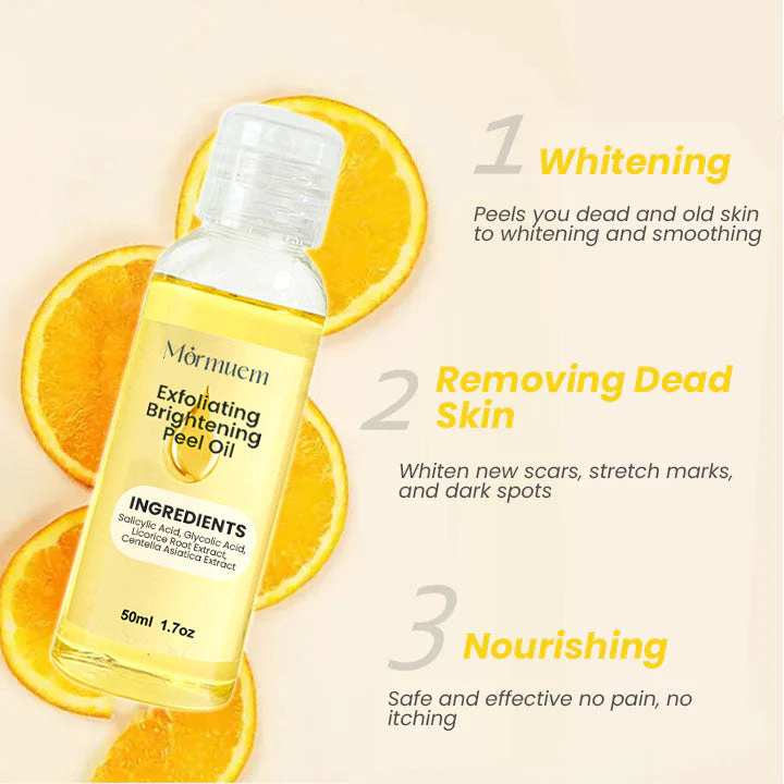 “I’ve been using the Mormuem™ Exfoliating Brightening Peel Oil for a few weeks now, and I can already see a significant improvement in the texture and appearance of my skin. The oil is incredibly gentle yet effective and has helped to brighten my complexion and reduce the appearance of dark spots and fine lines. My skin looks smoother and more radiant, and I’ve received so many compliments on how great my skin looks. I love how easy the product is to use, and it doesn’t cause any irritation or redness. Overall, I would highly recommend this product to anyone looking to improve their skin’s appearance and achieve a brighter, more youthful complexion.”