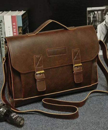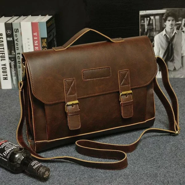 MROYALE™ Men’s Briefcase Leather Messenger 14″ Laptop Crossbody Bag