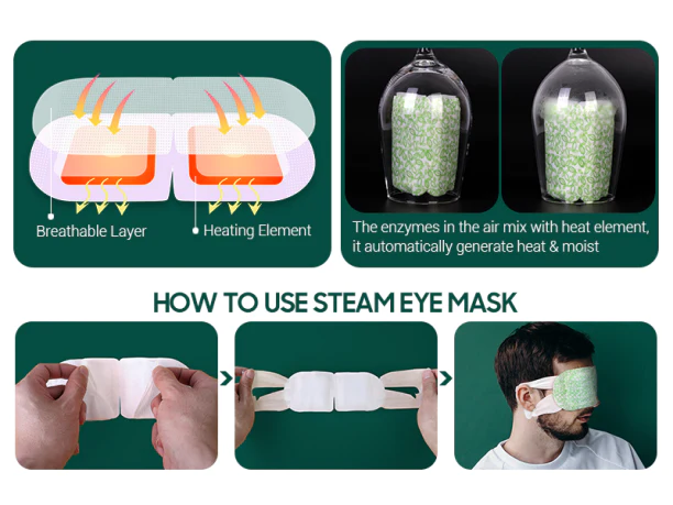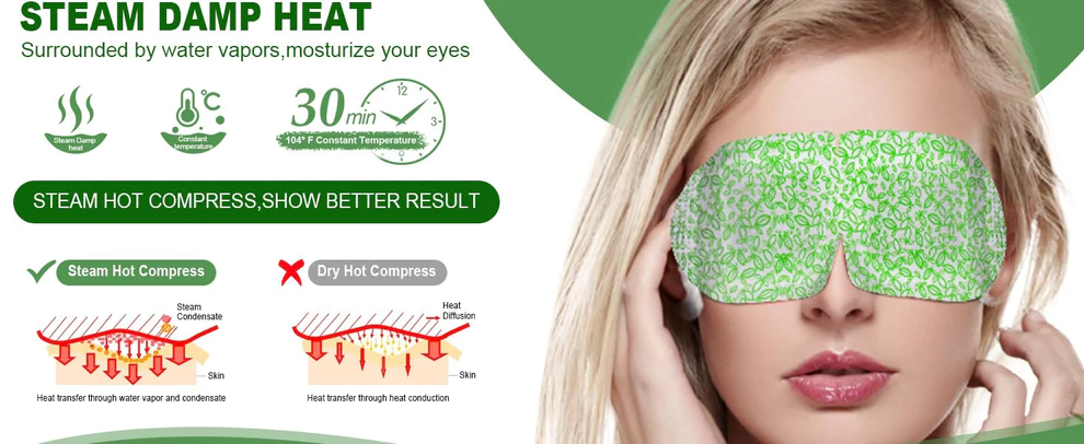unique therapeutic effect: the warmth of the plant steam eye mask and the effect of plant extracts can soothe eye fatigue, eliminate dark circles and eye bags, and relieve eye discomfort symptoms effectively.