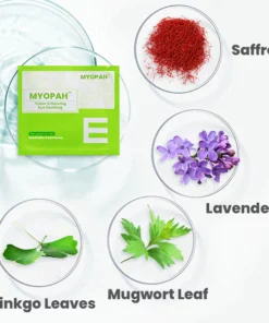 MyoPah™ eye patches for nearsightedness contain four herbal plants: saffron, ginkgo biloba leaves, lavender, and mugwort. Each herb has beneficial effects on eye health, but they work differently. Saffron and mugwort promote microcirculation in the eyes, alleviate eye fatigue and discomfort, while ginkgo biloba leaves protect the retina and improve eyesight. Lavender eases eye fatigue and swelling, enhancing visual acuity.