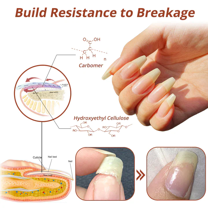 • Carbomer – crée une consistance gélifiée, aidant le sérum à pénétrer efficacement dans le lit de l’ongle.