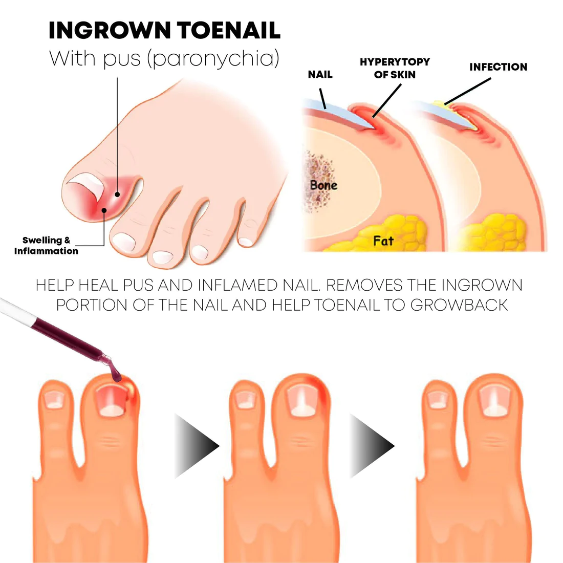 NailRelief AntiParonychia Herbal Oil treats, eliminates, and prevents the cause of ingrown toenails and calloused tissue, softens buried toenails and calloused tissue, inhibits ingrown toenails, promotes healthy nail renewal, and straightens the nails.
