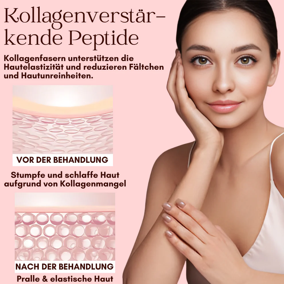 - Steigert die Hautelastizität: Stärkt die Struktur Ihrer Haut und macht sie widerstandsfähiger. Peptide und Ceramide helfen, die Hautbarriere zu stärken und die Festigkeit und Elastizität zu verbessern.