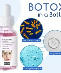 Infused with Botulinum toxin, a substance used in botox injections, this concentrated serum effectively Downplaying facial fine lines and wrinkles. Botulinum toxin in cosmetic form reduces and fades forehead creases, frown lines, and crow’s feet near the eyes.