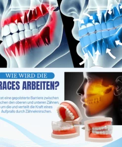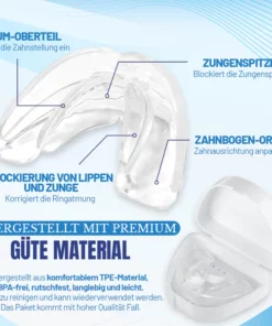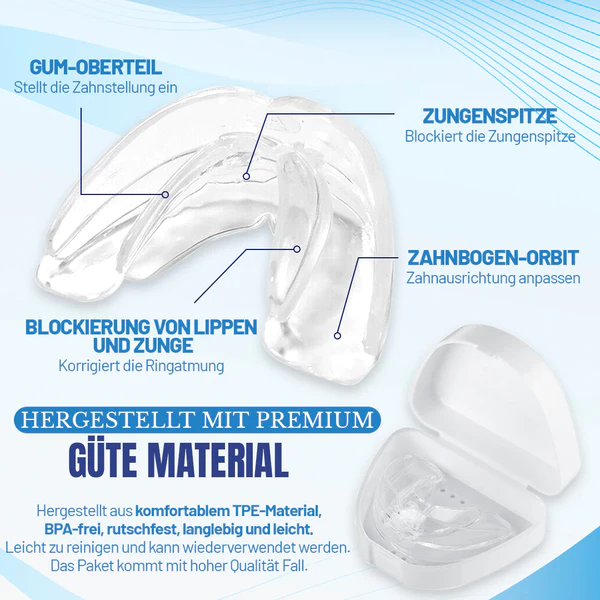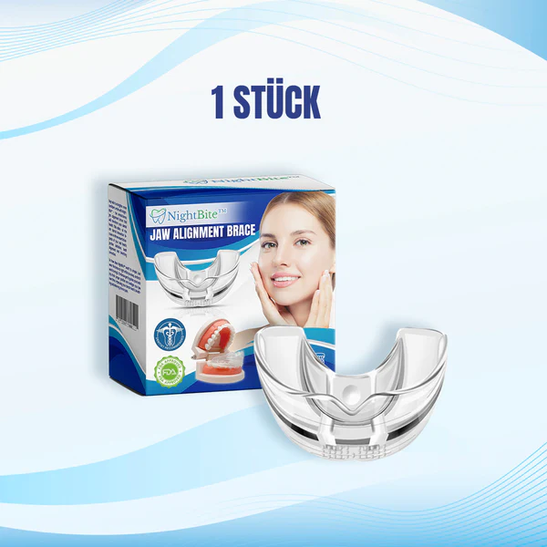 NightBite™ Kieferanpassungsspange ist eine komfortable, leichte Lösung zur Korrektur von Kieferfehlstellungen und schiefen Zähnen. Die Spange wird nur nachts getragen und übt allmählich Druck auf Zähne und Kiefer aus, was zu einer verbesserten Atmung und einer Ausrichtung von Zähnen und Kiefer führt. Außerdem ist sie praktisch unsichtbar und damit eine diskrete Alternative zu herkömmlichen Metallspangen. Mit NightBite™ wachen Sie selbstbewusst auf und sind bereit, Ihr verbessertes Lächeln zu zeigen.