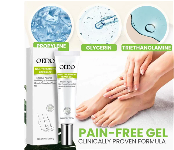 OEDO™Nail Repair Treatment Gel is a medical gel designed to kill fungus, improve the appearance of nails damaged by fungus and prevent fungus re-infection with a gel coating. Clinically proven to reduce discoloration, correct deformed shape, clean out yellowing or dark keratin debris, normalize thickness and hydrate brittle nails.