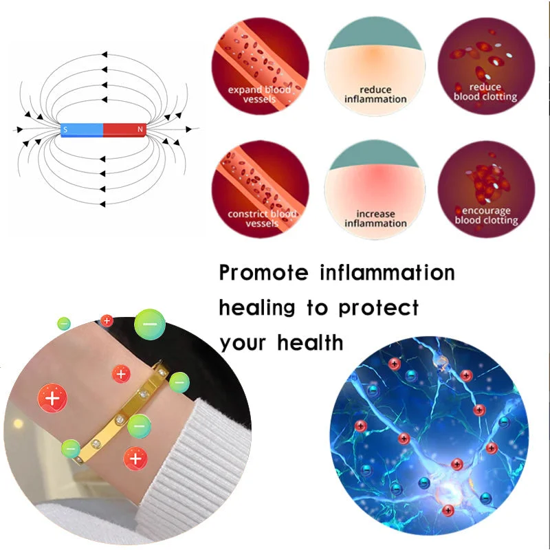 Oneswear™ Lymphatic Magnetic Therapy Bracelet uses medical-grade magnets for magnetic therapy, promoting overall health by affecting the biomagnetic field. It is safe and efficient with no side effects. Studies have shown that the mild magnetic fields produced by medical-grade magnets can cause minimal dilation or constriction of blood vessels, increasing blood flow and suppressing inflammation, which is crucial in the healing process.