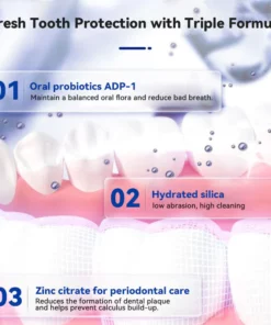 Oraliz™ anti-cavity toothpaste with mint scent utilizes a combination of bioactive silica, oral probiotics adp-1, and zinc citrate to protect against cavities, promote gum health, and freshen breath. Bioactive silica helps to strengthen tooth enamel, while oral probiotics adp-1 support a healthy oral microbiome. Zinc citrate helps to reduce plaque and neutralize bad breath. Regular use of this toothpaste can lead to improved overall oral health.