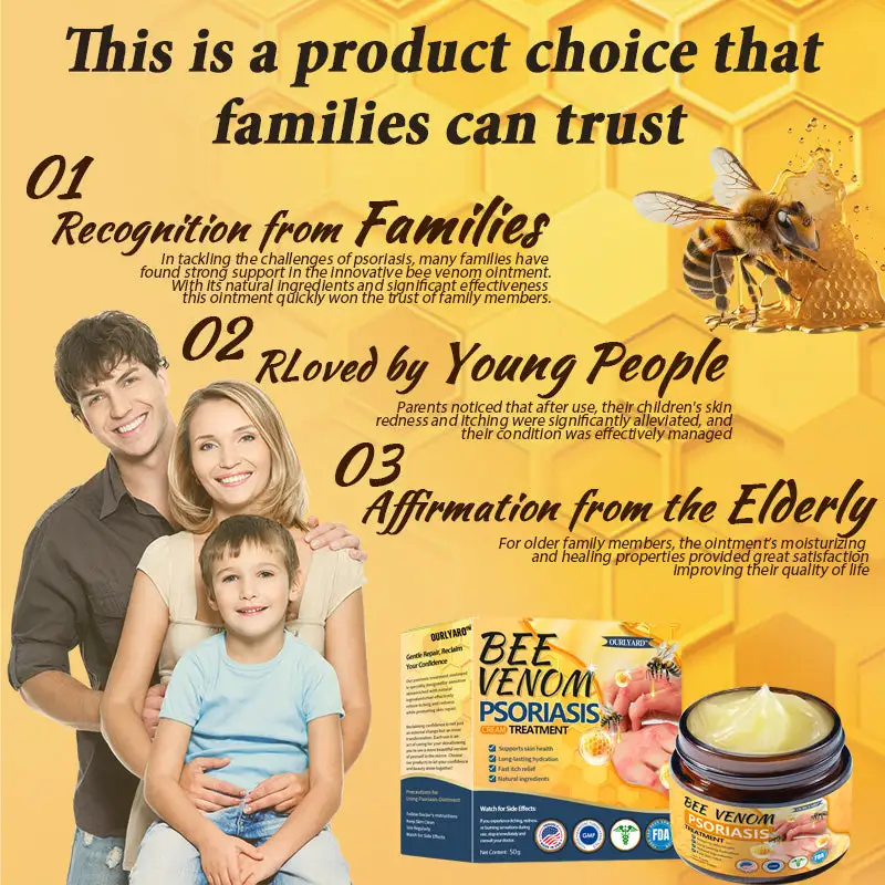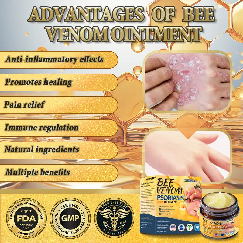 Ourlyard™ Bee Venom Advanced Psoriasis Treatment Cream cleanses the skin from the inside out, alleviating itching and inflammation. It is free from irritating chemicals and does not exacerbate already damaged skin. Ourlyard™ helps minimize the growth of skin cells triggered by psoriasis, providing relief from inflammation, itching, and scaling associated with this condition.