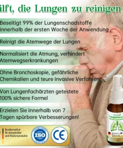 “Ich habe mehrere pflanzliche Inhaltsstoffe kombiniert, die sich seit langem als hilfreich zur Straffung der Haut erwiesen haben, um das Ourlyard™ Lungen Schleim Reinigungs Sprayy zu entwickeln. Experimentelle Beweise zeigen, dass dieses Spray die optimale Lösung für chronische Atemwegserkrankungen ist. Die Kombination dieser Inhaltsstoffe bietet eine bahnbrechende Lösung, die die Lungenreinheit und -gesundheit grundlegend wiederherstellt.”