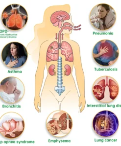 Da der Schleim effektiv ausgeschieden wird, wird der Druck in den Atemwegen gelindert, und die Kanäle werden freier, was Erleichterung bei Erkrankungen wie chronisch obstruktiver Lungenerkrankung (COPD), Asthma, chronischem Husten, Bronchitis, Emphysem, Lungenentzündung, Schlafapnoe, Nachwirkungen nach einer Schilddrüsenoperation und Erkältungen bietet. Dieser Prozess fördert nicht nur die Lungengesundheit, sondern hilft auch, die normale Atemfunktion wiederherzustellen, sodass Sie ein müheloseres Atmen genießen können.