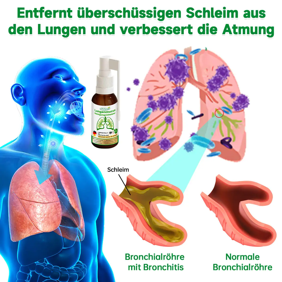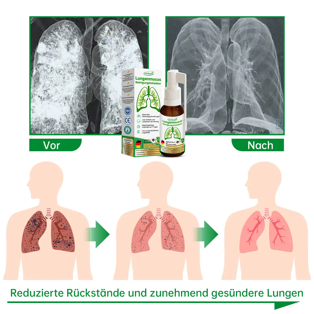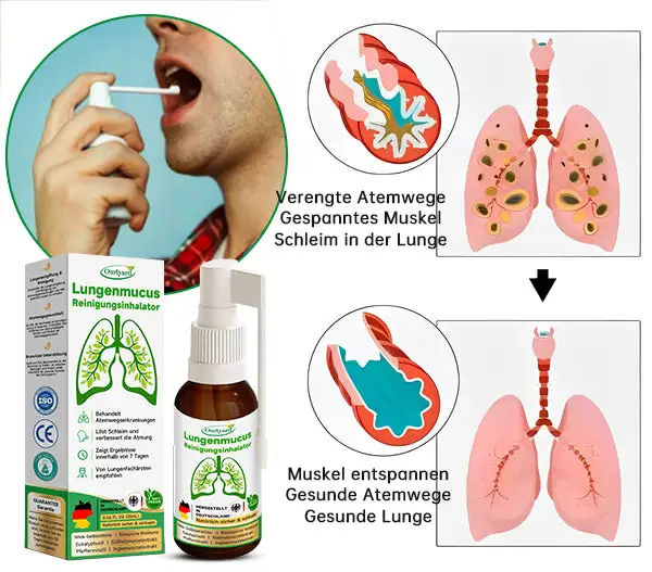 Das Ourlyard™ Lungen Schleim Reinigungs Spray wird von führenden Lungenexperten empfohlen und wurde entwickelt, um Lungenschleim gründlich zu beseitigen und geschädigtes Lungengewebe zu reparieren. Es lindert effektiv verschiedene Atemwegserkrankungen, einschließlich chronisch obstruktiver Lungenerkrankung (COPD), Asthma und chronischem Husten.