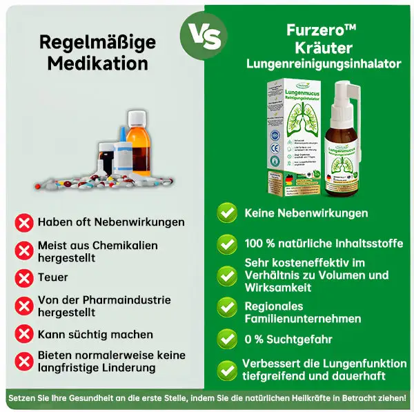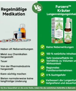 Ourlyard™ wurde von Pulmonologen und Dermatologen getestet und ist völlig hypoallergen, geeignet für alle Altersgruppen. Im Gegensatz zu Medikamenten, von denen Ihr Körper möglicherweise abhängig wird, um Symptome zu lindern, ist das Ourlyard™ Lungen Schleim Reinigungs Spray 100 % natürlich und kann viele verschreibungspflichtige und rezeptfreie Atemwegserkrankungsmedikamente sowie Schleimverdünner ersetzen. Mit der Zeit hilft es, die Lungenfunktion zu verbessern und das Immunsystem des Atmungssystems durch natürliche Therapie zu stärken.