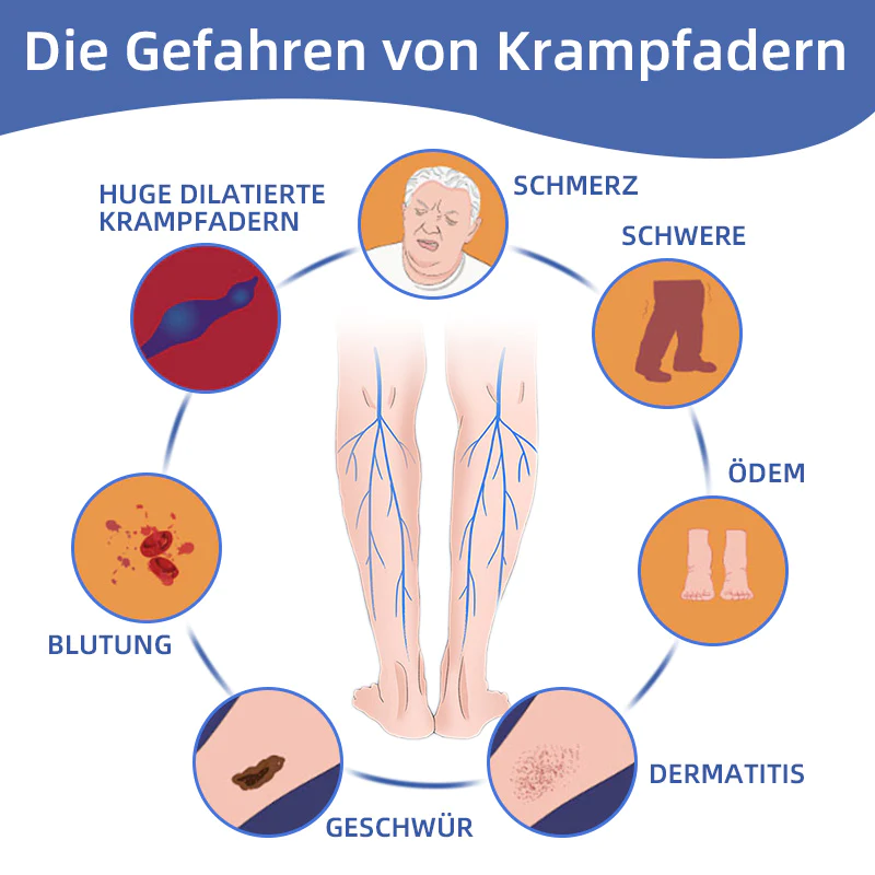 1. Blutgerinnselbildung: Krampfadern erhöhen das Risiko einer Blutstauung und der Bildung von Blutgerinnseln in den Venen. Dies kann zu einer tiefen Venenthrombose (TVT) führen, einer schwerwiegenden Komplikation, die dazu führen kann, dass Blutgerinnsel sich lösen und zu einer Lungenembolie führen.