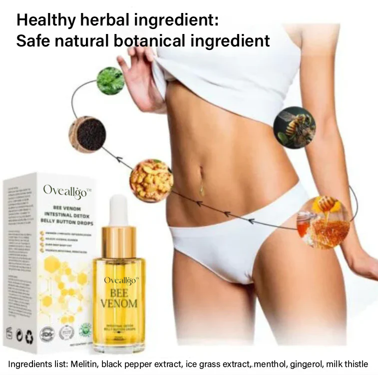 With the advancement of technology, more and more unhealthy food has appeared on the table of human beings. The toxins contained therein will gradually accumulate in the body and erode our body without our knowledge. The digestive system and lymphatic system are important detoxification pathways for the human body. That’s why we developed Oveallgo™ Bee Venom Intestinal Detox Belly Button Drops, which contains Bee Venom Peptides, Bio-Enzymes, and Iceweed Extracts, as well as four other herbal extracts. These highly active ingredients are mixed in specific proportions through ultrasonic treatment at different frequencies to ensure its easy absorption, high activity and easy storage. Drop it at the position of the navel, underneath which are rich capillaries that allow nutrients to participate directly in blood circulation and lymphatic circulation. Thus, it can achieve the effect of stimulating intestinal peristalsis, stimulating lymphatic detoxification, promoting metabolism, burning fat and suppressing appetite.