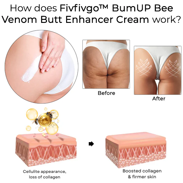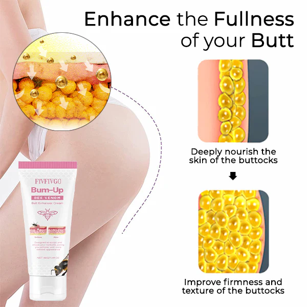 Oveallgo™ BumUP Bee Venom Butt Enhancer Cream, formulated with skin-firming elements like bee venom, sculpts and shapes your buttocks for a firmer, more defined look. Bee venom contains chemicals that stimulate the skin’s production of collagen and elastin. Bee venom can improve skin elasticity and firmness by increasing collagen and elastin production, resulting in less fine lines and wrinkles.