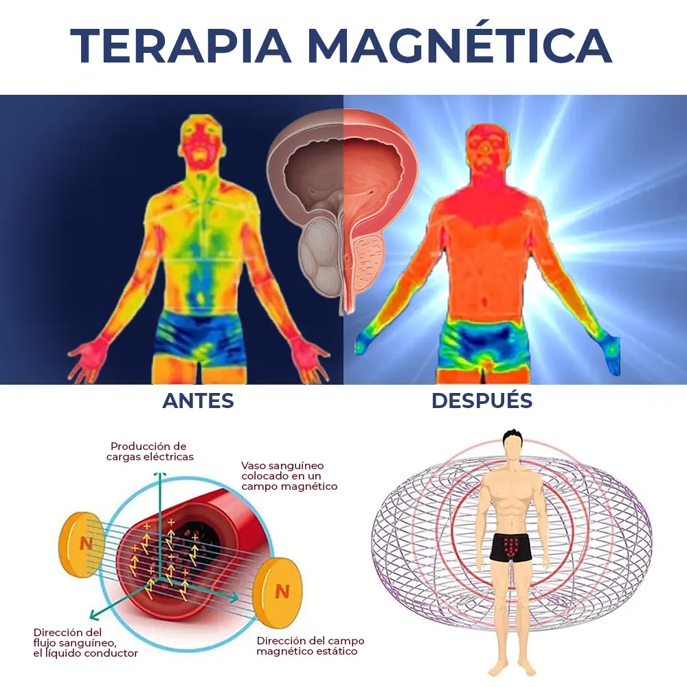 Las terapias magnéticas e iónicas pueden reducir la inflamación crónica en los tejidos de la próstata al modular la producción de citocinas, un factor clave en afecciones como la hiperplasia prostática benigna (HPB). Esto ayuda a aliviar síntomas como el malestar pélvico y los problemas urinarios al mejorar el flujo sanguíneo, reducir la hinchazón y mejorar la función urinaria, lo que ofrece una solución no invasiva y sin medicamentos para mejorar la salud de la próstata y la calidad de vida.