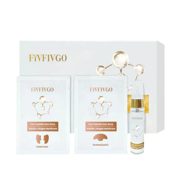 Oveallgo™ Korean Taro Peptide Deer Bone Soluble Collagen Membrane offers a remarkable solution for skin. The unique collagen film vanishes upon application, allowing the potent collagen essence to deeply hydrate and rejuvenate the skin, effectively combating aging signs. This results in heightened skin elasticity, a luminous complexion, and an instant youthful transformation. The package includes masks for cheeks and forehead, accompanied by the specialized Deer Bone Collagen Essence, creating a comprehensive skincare regimen that moisturizes, revitalizes, nourishes, and diminishes signs of aging.