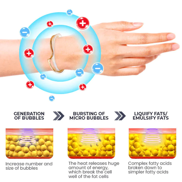 The Oveallgo™ LeanLine Magnetic Bangle uses micro magnets to increase the flow of blood through your veins and capillaries, reducing swelling, inflammation, and fluid retention. This allows for increased oxygenation of tissue throughout your body—including those areas where fat tends to accumulate more easily: around your waistline, hips, thighs, and upper arms.