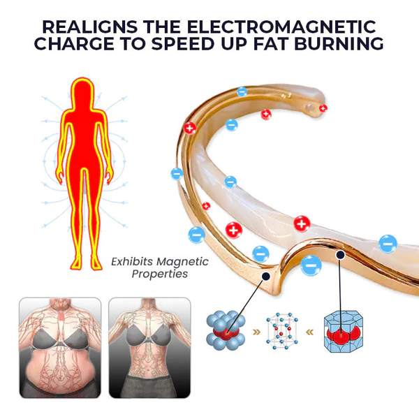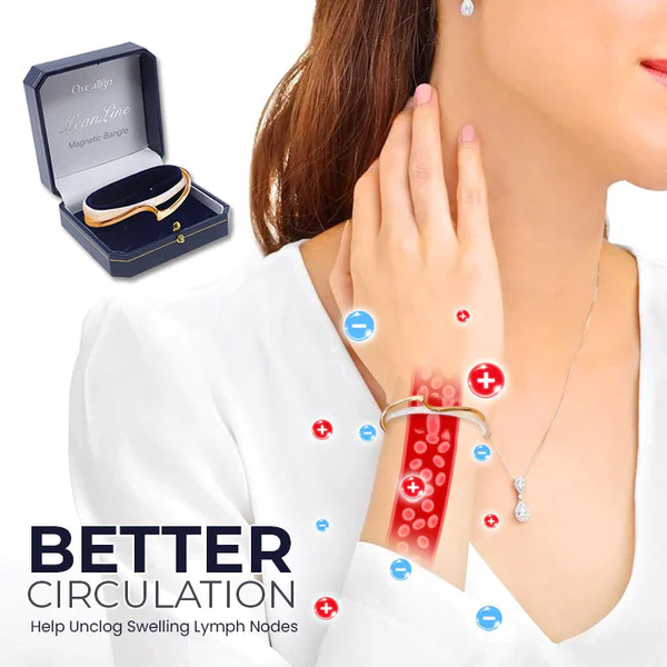 The Oveallgo™ LeanLine Magnetic Bangle uses micro magnets to increase the flow of blood through your veins and capillaries, reducing swelling, inflammation, and fluid retention. This allows for increased oxygenation of tissue throughout your body—including those areas where fat tends to accumulate more easily: around your waistline, hips, thighs, and upper arms.